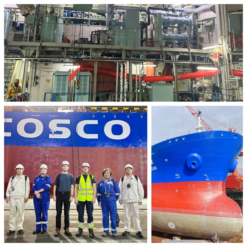 本次海试的成功得益于各方的深度协作。中远海运能源在船舶资源协调上提供了关键支持,广东中远海运重工凭借专业的船舶改造工程能力全力配合系统安装与船坞保障,确保了系统顺利安装。在技术验证层面,中国船级社(CCS)自海试船确定之初就深度参与,从技术规范解读到安装检验提供专业指导。挪威船级社(DNV)全程参与,全面审核系统设计资料、优化实验方案并实船验证系统安全性能,共同为海试的权威性和规范性保驾护航。